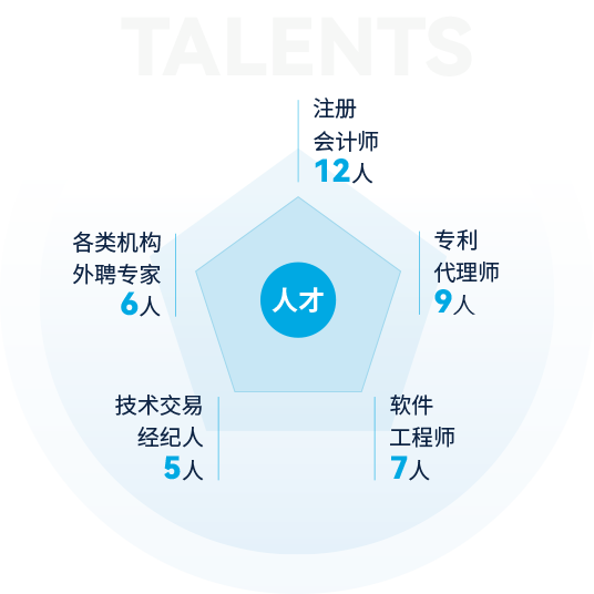 截止2024年,公司擁有各類人才400余人,其中全職博士2人,全職碩士23人,本科188人,???00余人,注冊會計(jì)師12人,專利代理師9人,軟件工程師7人,技術(shù)交易經(jīng)紀(jì)人5人,南京企服中心等各類機(jī)構(gòu)外聘專家6人,公司還和南京大學(xué)、東南大學(xué)、南京農(nóng)業(yè)大學(xué)、南京信息工程大學(xué)、南通大學(xué)、江蘇開放大學(xué)等建立了良好的合作關(guān)系。